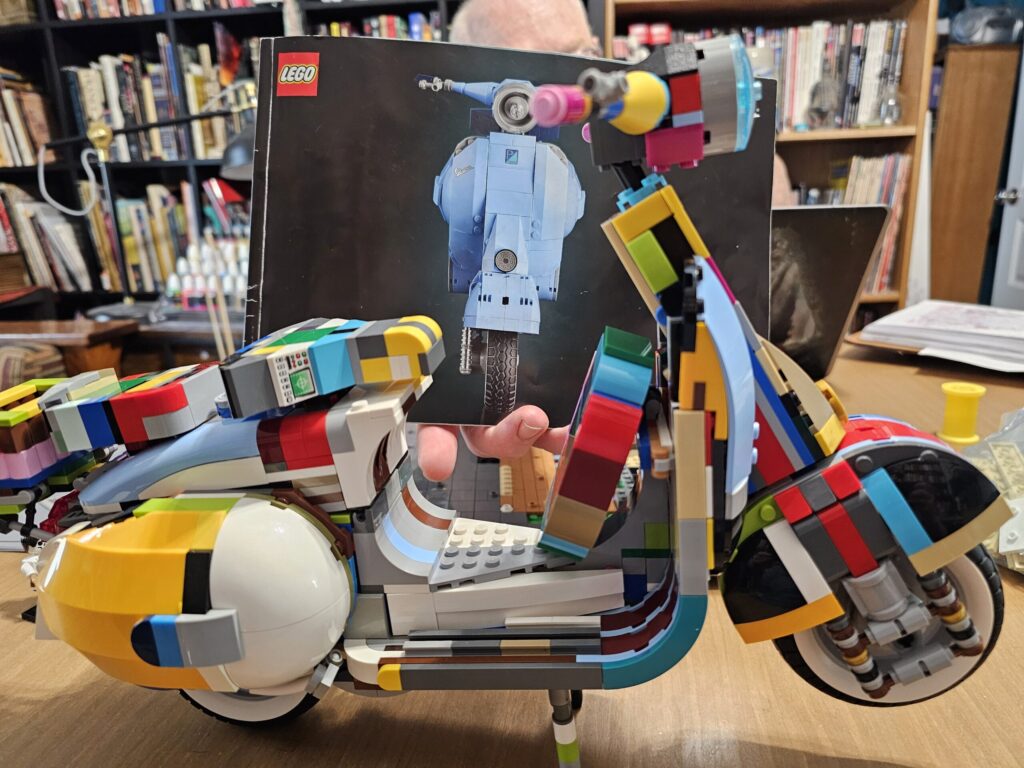 I loved building this kit so much that I decided to build it again, but this time using parts of whatever color I could find. Let me introduce the Junk Vespa.
