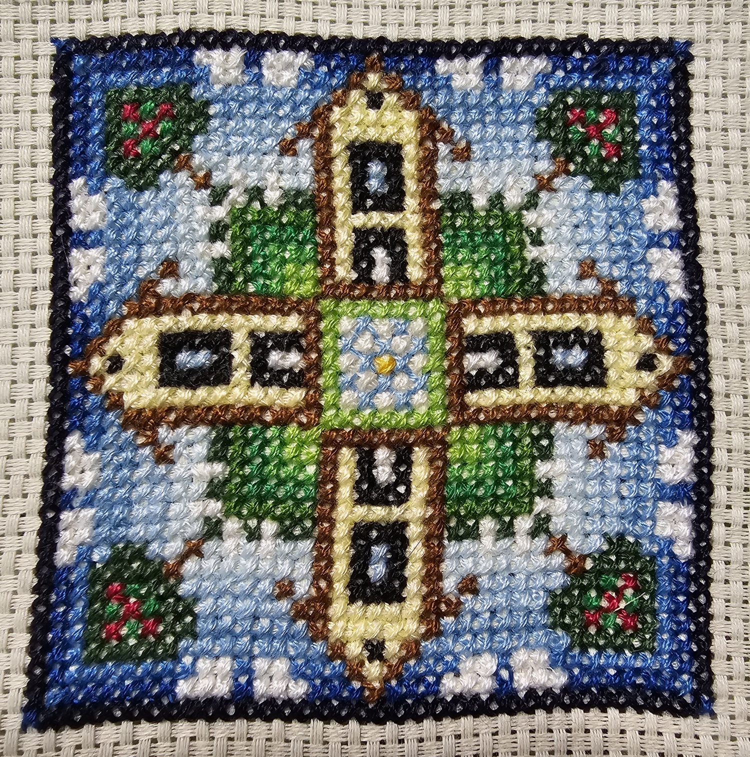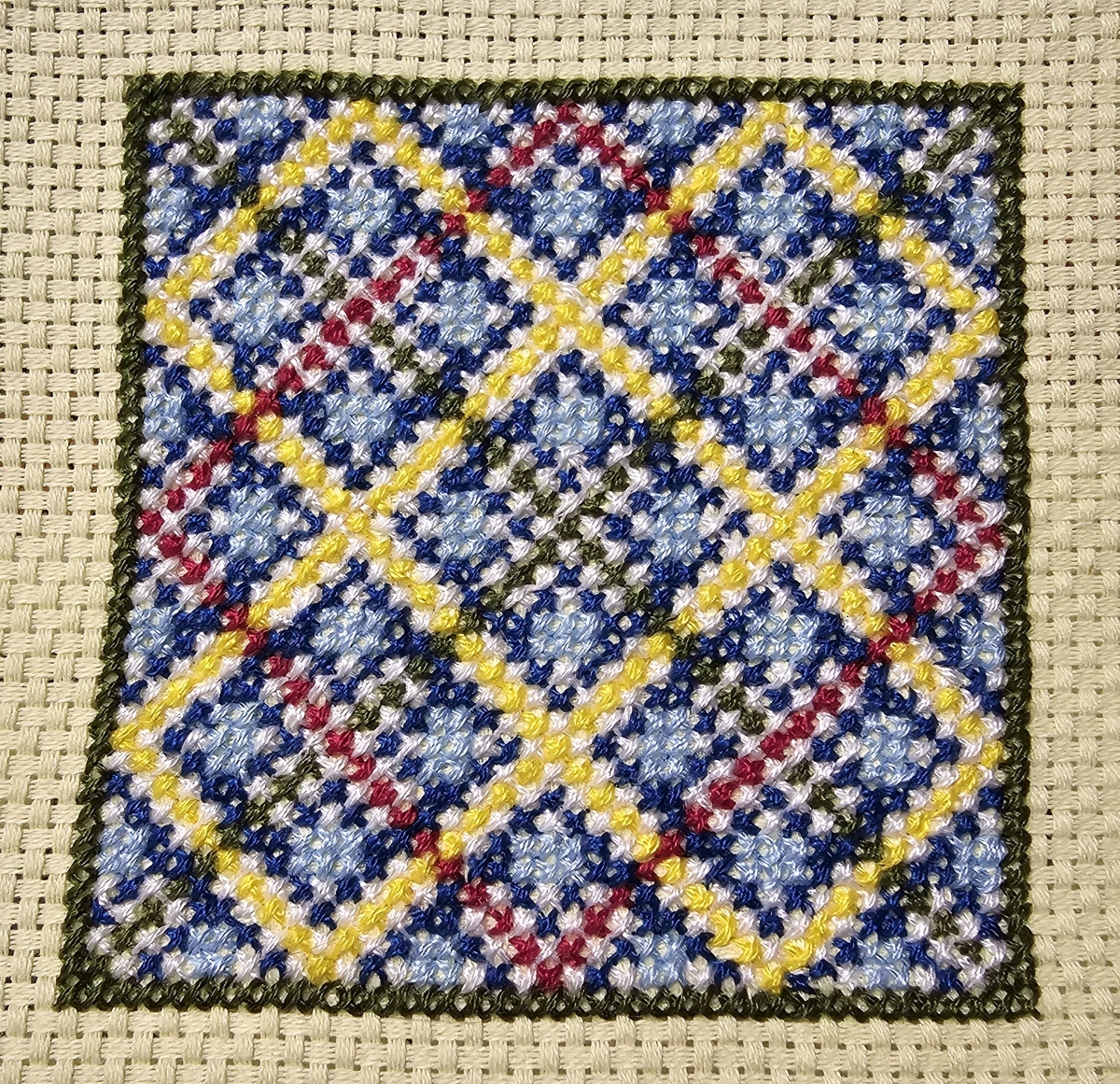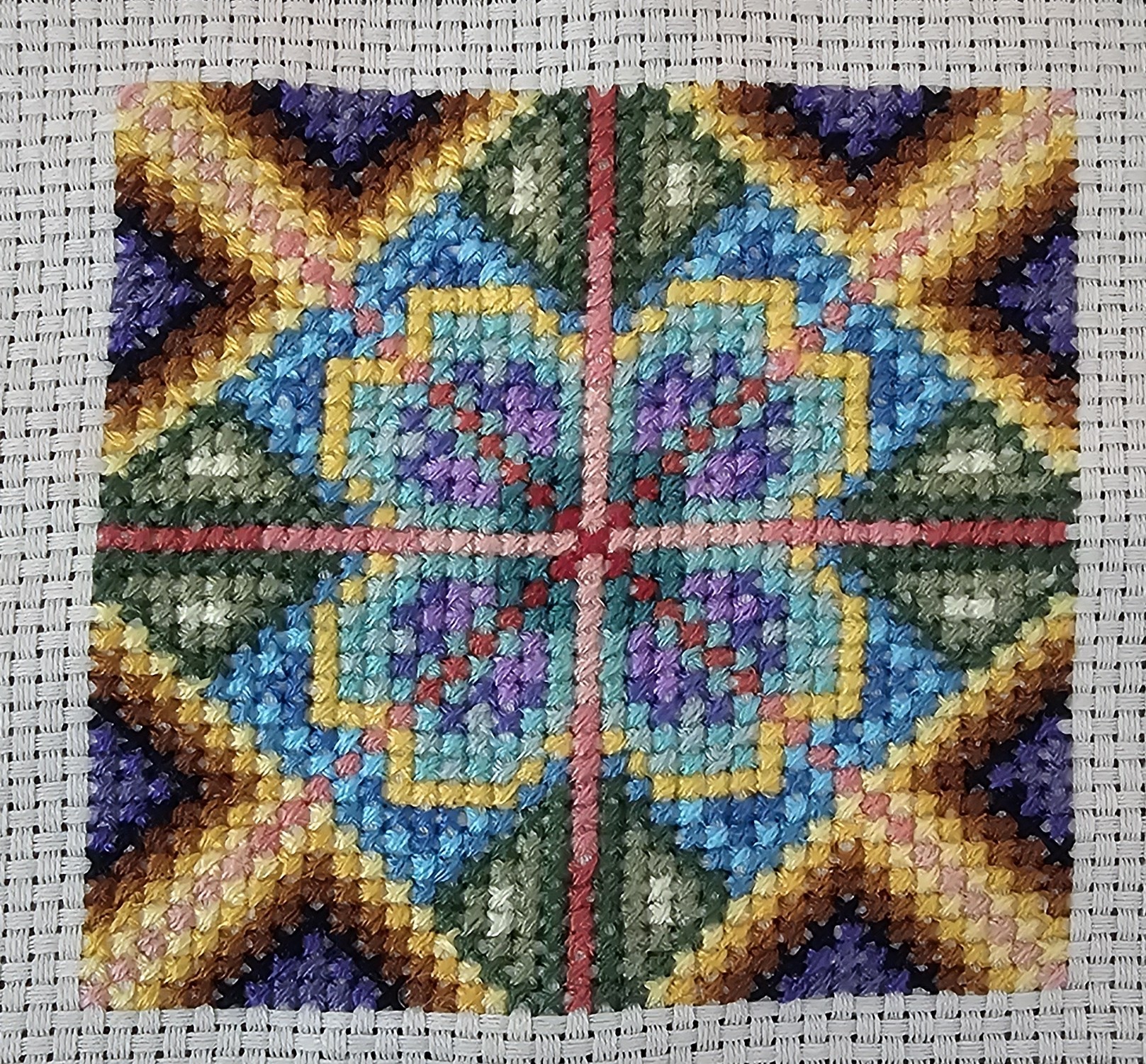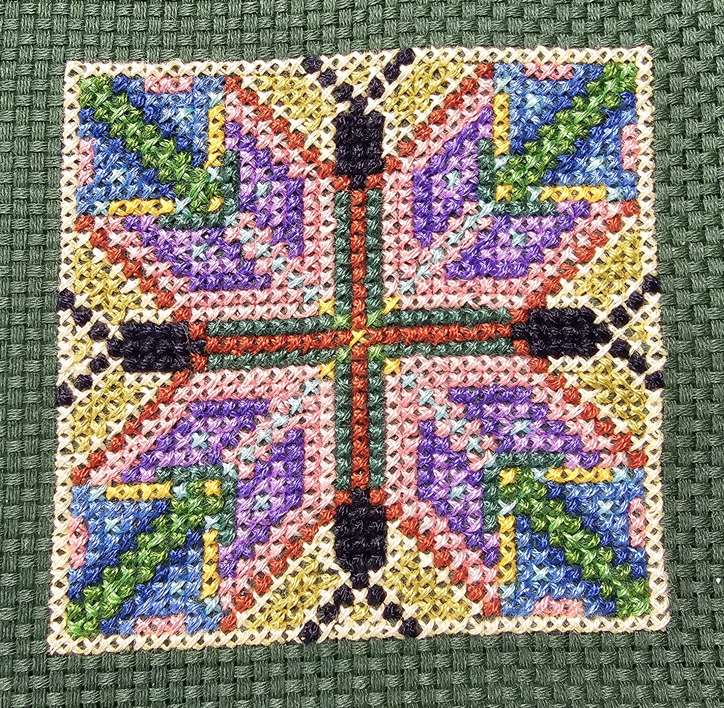 I added a background based on the color theory quilt I recently finished. Also, I have added another cross stitch pattern and images for the video links.